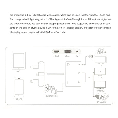 3 in 1 8 Pin to HDMI / VGA / Audio Adapter